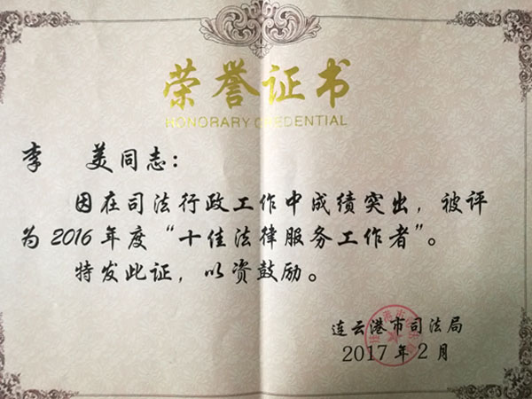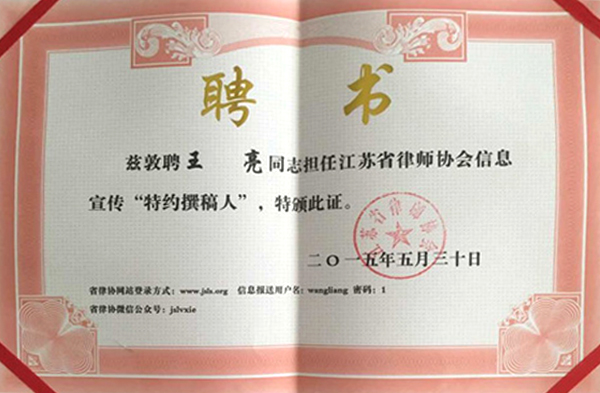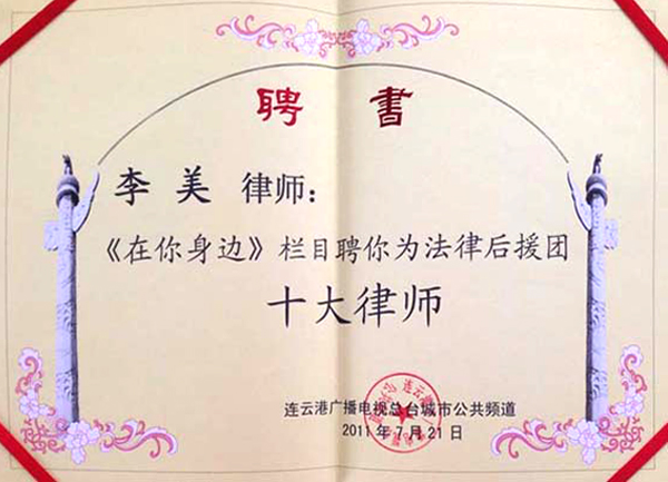 ![]() 本所荣获江苏省优秀律师事务所 ![]() 本所荣获2013年度全市司法行政系统先进集体 ![]() 本所荣获全市律师队伍“依法治国”集中教育活动先进集体 ![]() 付长洋律师荣获江苏省优秀青年律师 ![]() 李美律师荣获2016年度十佳法律服务工作者 ![]() 李美律师荣获2011年度全市优秀律师 ![]() 付长洋律师荣获2011年度148先进个人 ![]() 付长洋律师受聘为灌云县侍庄街道办事处法律顾问 ![]() 李美律师受聘为《在你身边》法律后援团 ![]() 王亮律师受聘为省律协会信息宣传特约撰稿人 |
